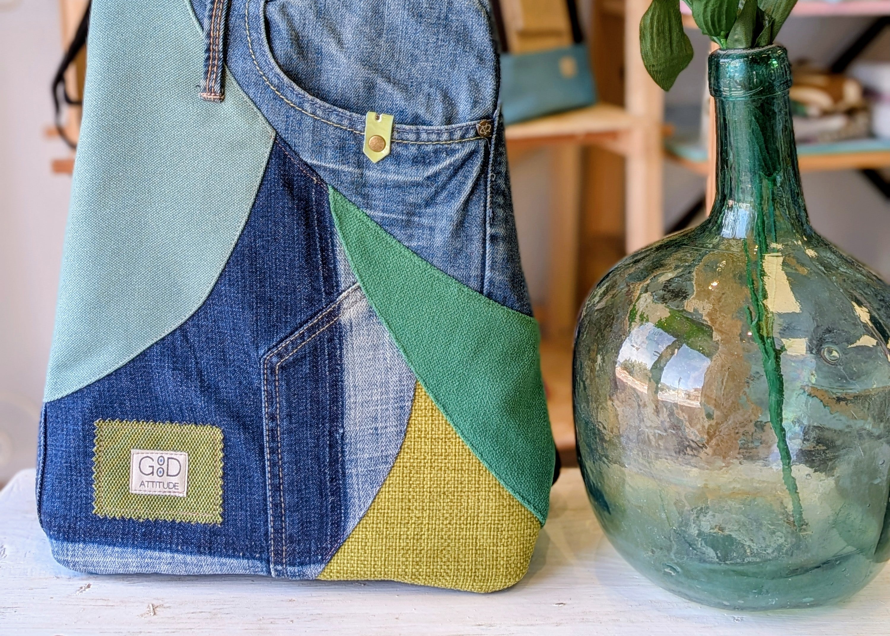 Mochila antirrobo artesanal Loira pocket verde, turquesa y mora 2